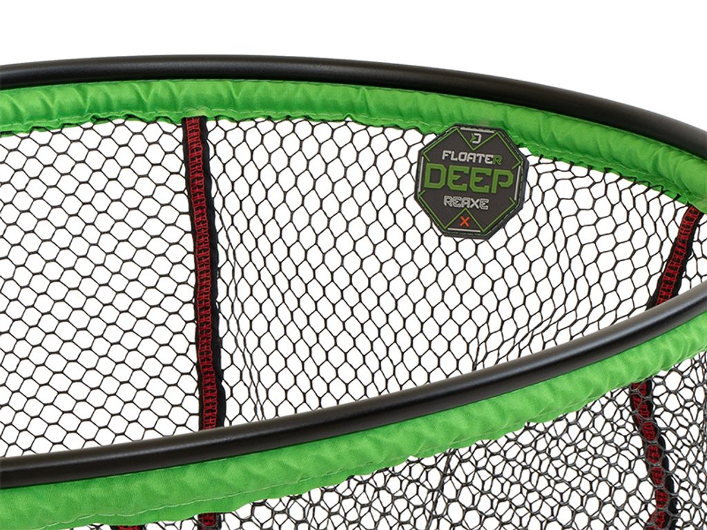 Plovoucí hlava podběráku oválného tvaru ze série REAXE disponující lehkým a pevným hliníkovým rámem černé barvy.