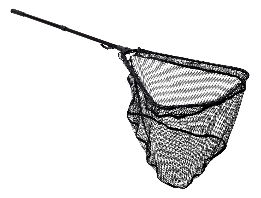 Teleskopický podběrák s odolnou konstrukcí z černého rámu a černou sítí.
