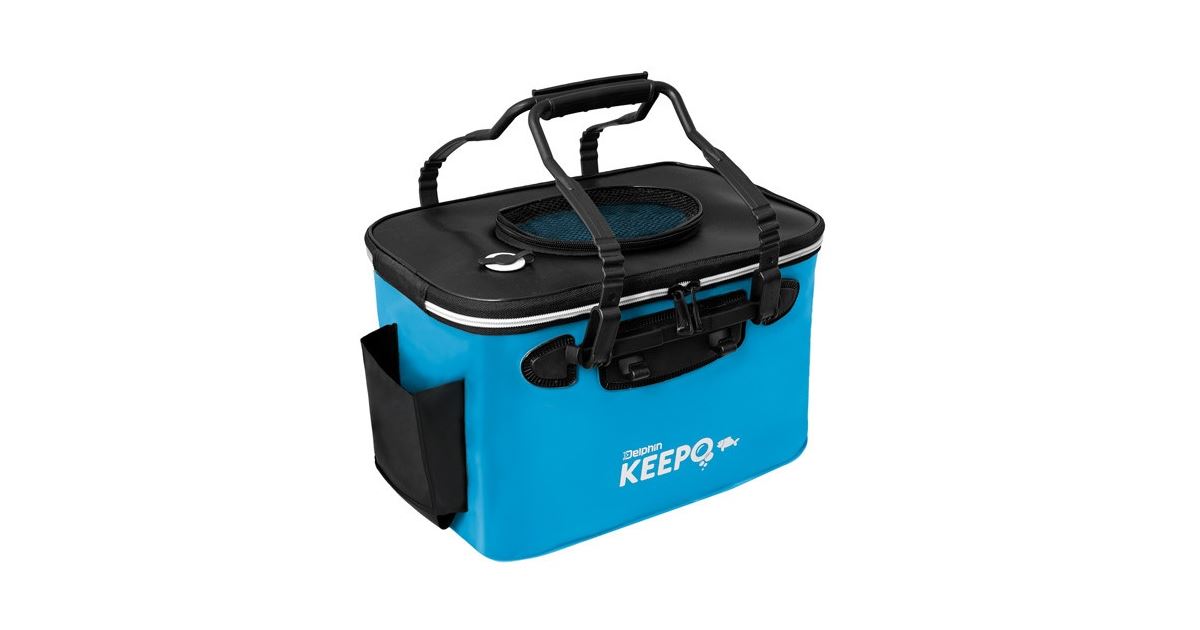 Jeho vrchní část se otevírá po celém obvodu pomocí zipu. Víko je na vrchní části opatřeno otvorem, který je vyroben ze síťoviny, takže máte dokonalý přehled, co se uvnitř nachází. Otvor se uzavírá jednoduše zipem po jeho obvodu a slouží ke vkládání a vyjímání živé nástrahy. Najdeme zde i malý otvor pro hadičku okysličovače. Okysličování je možné uložit do vnější kapsy, která byla pro tento účel i primárně navržena (např. okysličovače Delphin A-PUMP maxi nebo mini). Taška je vybavena dvěma plastovými úchopy, které je možné zafixovat zasunutím jejich vrchních částí do sebe. Delphin KEEPO je praktická pomůcka pro všechny, kteří potřebují své nástražní rybky přechovat během transportu na lovné místo. Alternativně je možné ji použít i na odkládání různého rybářského příslušenství.