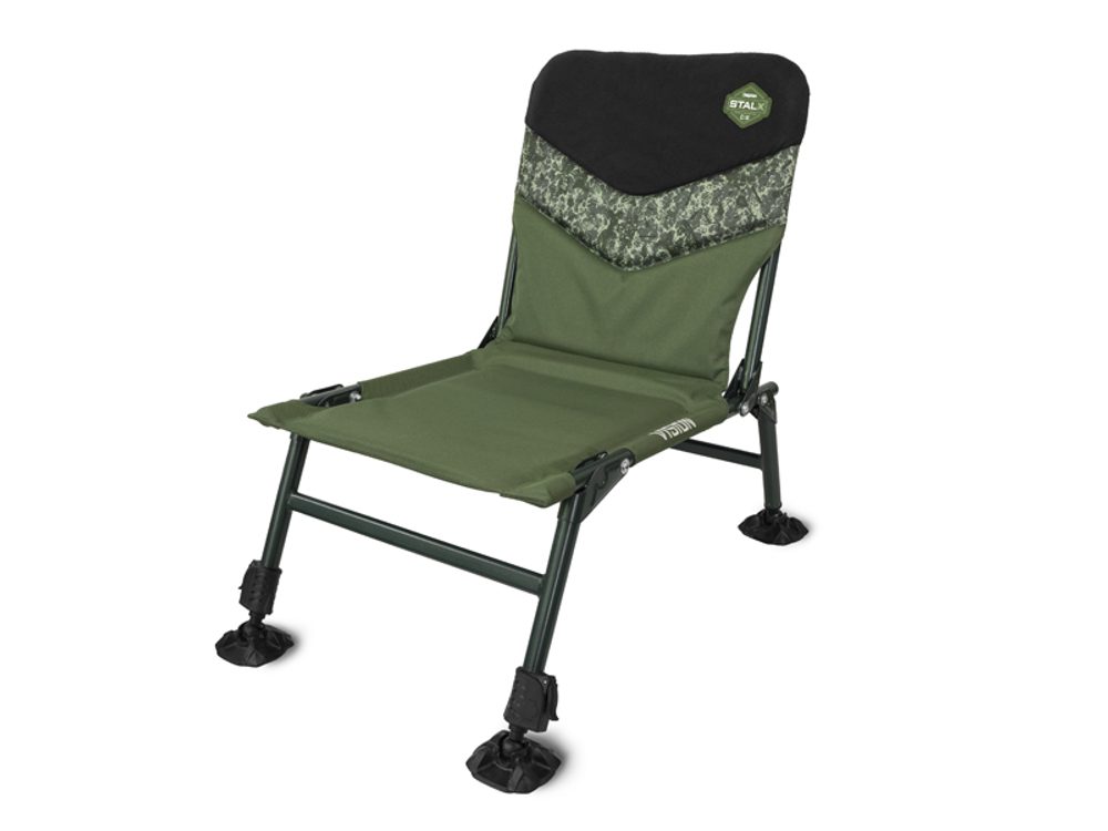 Nohy křesla jsou opatřeny robustními a flexibilními patkami, které se přizpůsobí každé nerovnosti terénu a zároveň zabraňují zaboření do měkké či bahnité země. Přední pár nohou je výškově nastavitelný, čímž křeslo nebude problém rozložit ani na malých a nerovných místech. Zadní nohy jsou fixovány pomocí pojistek, které zaručí, že ani při posouvání se Vám více nohy křesla nezavřou a nehrozí tak nečekaný pád.