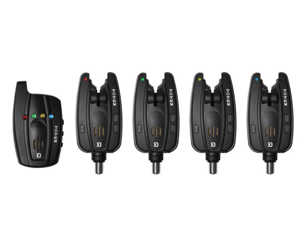 Extrémně kompaktní rozměry signalizátoru a přijímače v ergonomickém tvaru. Delphin TOTEM nabízí úplnou voděodolnost signalizátoru a přijímač se skvělým dosahem až 150m v závislosti na okolních podmínkách. Signalizátor má ultra jasnou LED diodu s velmi dlouhou výdrží. Je napájen 9V baterií, což zajišťuje jeho dlouhou dobu provozu. Dobrou vychytávkou je alarm, který krátkým pípnutím a svícením LED diod upozorní na snížení stavu kapacity baterie pod 5V (rovněž pípne i přijímač). TOTEM nabízí možnost otestování všech jeho funkcí. Má 4 úrovně hlasitosti včetně tichého režimu, 4 různé tóny a 4 úrovně citlivosti. Ve tmě jistě oceníte možnost zapnutí noční diody. Vstup pro 2,5mm jack umožňuje připojení svítícího signalizátoru záběru. Silné pogumování v části kontaktu prutu se signalizátorem zamezuje poškození prutu. Signalizátor po záběru svítí 15 sekund (také přijímač).