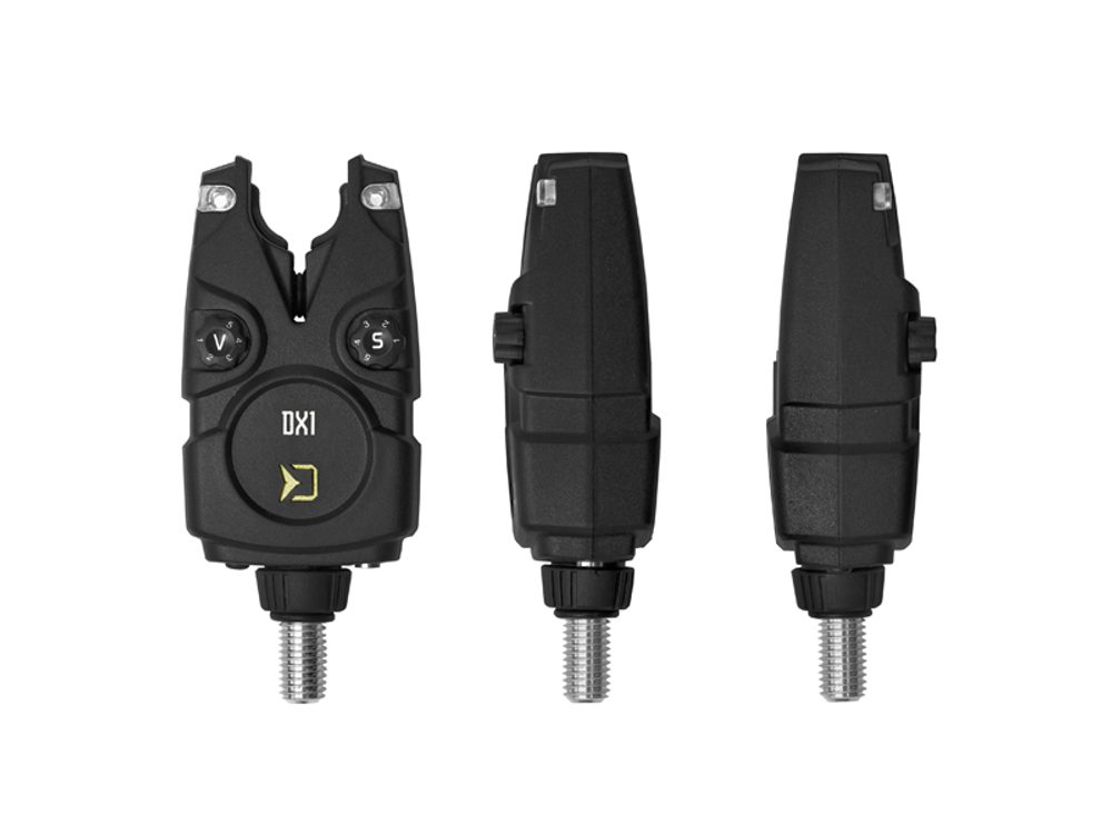 Signalizátor DX1 je napájen 1x12V baterií typu LR23A, která disponuje dostatečně dlouhou výdrží. V případě slabé baterie vás signalizátor upozorní krátkým pípnutím. Pomocí spínače "V" je možné vybrat jednu z 5 úrovní hlasitosti, včetně tichého módu. Také si lze navolit požadovaný tón a úroveň citlivosti, které mají také 5 různých úrovní. Nespornou devizou signalizátorů ze sady DX1 je možnost výběru ze 7 barev signalizační LED diody.