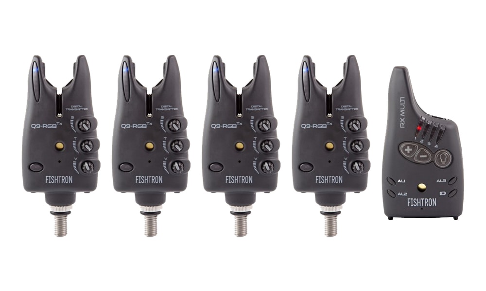 Sada hlásičů nové řady FLAJZAR FISHTRON Q9-RGB-TX (4ks.) s příposlechem RX MULTI + kufřík