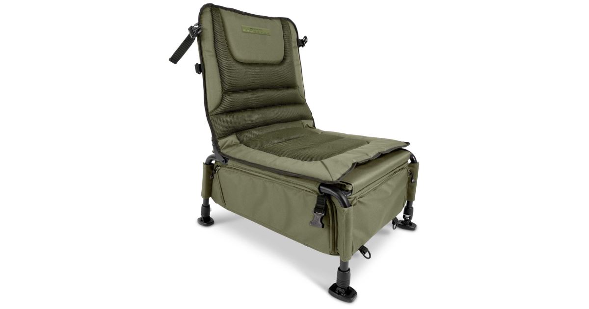 Praktické úložné prostory: Křeslo je vybaveno různými kapsami a kapsičkami, ve kterých můžete uložit potřebné věci pro vaše rybářské výpravy. Díky nim budete mít všechno důležité po ruce.