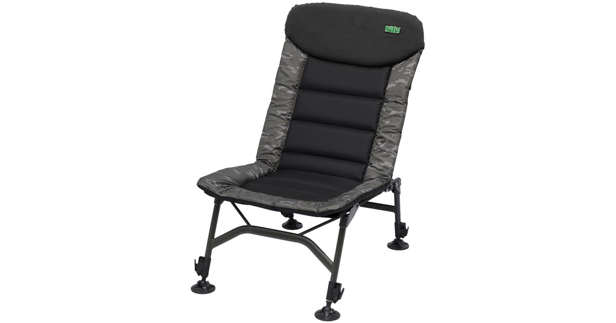 – Camoflážní design křesla se snadno smísí s okolním prostředím, což přispívá k úspěšnému rybolovu.