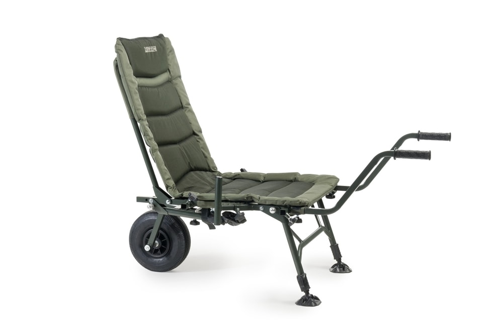 Z křesla lze během okamžiku vytvořit robustní přepravní vozík s nafukovacím kolem a dvěma rukojeťmi. Součástí dodávky je omyvatelný ochranný návlek na matraci a jeden boční adaptér na příslušenství. Křeslo i vozík mají nostnost 150kg. Vítěz ceny GRAND PRIX za nejlepší exponát v kategorii plavaná a feeder a rovněž vítěz hlavní ceny GRAND PRIX za nejlepší exponát rybářského veletrhu For Fishing 2018.
