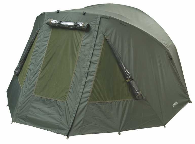 Všechna okna jsou plnohodnotná (přední třívrstvá, zadní dvouvrstvá s postranními zipy). I na přehozu najdete 4 úchyty na opřené pruty a zesílené zipy s táhly Easy Grip na chemické světlo.