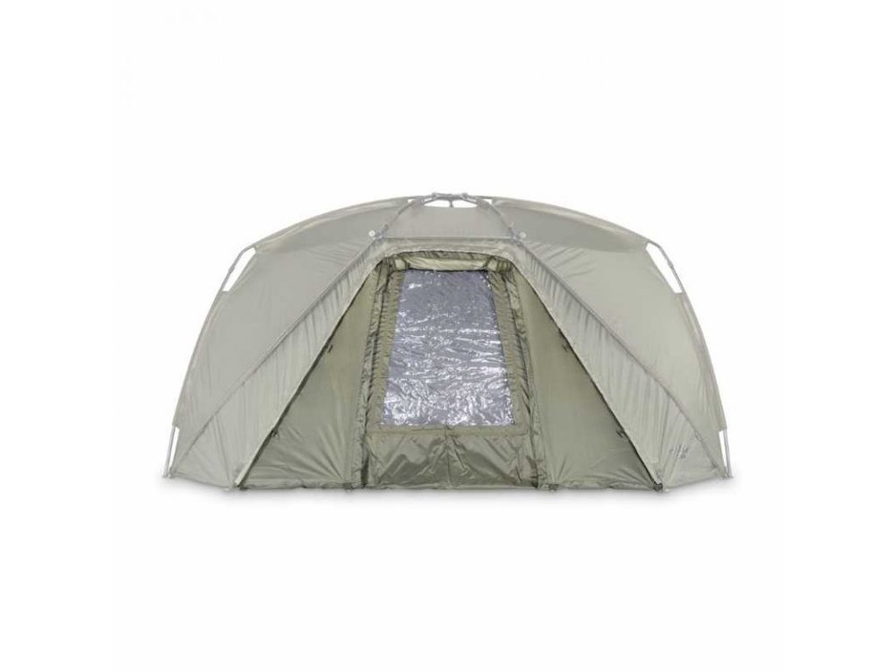- Přední dveře obsahují PVC panel, který zaručí světelnost uvnitř bivaku