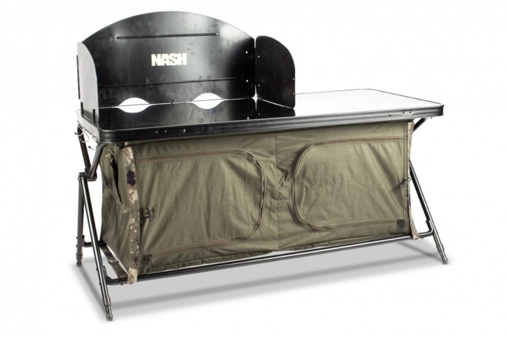 Skvělý produkt, který je opatřen třemi přidanými skládacími štíty proti větru, které se uchycují pomocí kovových kolíků a poskytují tak ochranu pro konvice a vařiče při vaření. Také poskytují ochranu proti ztrátě návazcových komponentů, když zrovna fouká. Má také žáruvzdornou pracovní plochu.