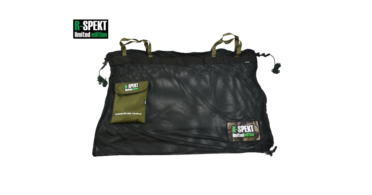 Systém zapínání zajišťuje masivní a odolný spirálový zip vedoucí po obvodu celé poloviny saku ve tvaru písmene „L“, pro ještě snadnější vložení úlovku. Pro bezpečné přenášení úlovku v saku jsou v jeho horní části umístěny dva páry pevných popruhových uší, pod nimiž vede po celé 115cm délce saku vodorovný zesilující popruh z obou stran. Samozřejmostí je bezpečnostní pojistka kam zacvaknete zip proti nechtěnému rozepnutí saku. Dále je pod touto pojistkou umístěna také kotvící šňůra jejíž délka činí 3m. Nově jsme přidali další dvě kotvící šňůry i do rohu druhé strany saku pro lepší vypnutí při sakování, jejich délka je také 3m. V pravém spodním rohu saku je umístěno logo R-SPEKT limited edition na textilii v lesním maskovacím designu. Velký přechovávací sak je standardně dodáván v praktickém transportním textilním pouzdře s logem R-SPEKT limited edition. Tento sak používají s oblibou přední čeští kapraři! Barevné provedení: černá síťovina s logem R-SPEKT limited edition / khaki popruhové uši / transportní pouzdro v khaki barvě Materiálové složení saku: polyesterová textilní síťovina Materiálové složení transportního pouzdra: 100% voděodolný polyester s PVC zátěrem Rozměry saku: 115 x 80cm