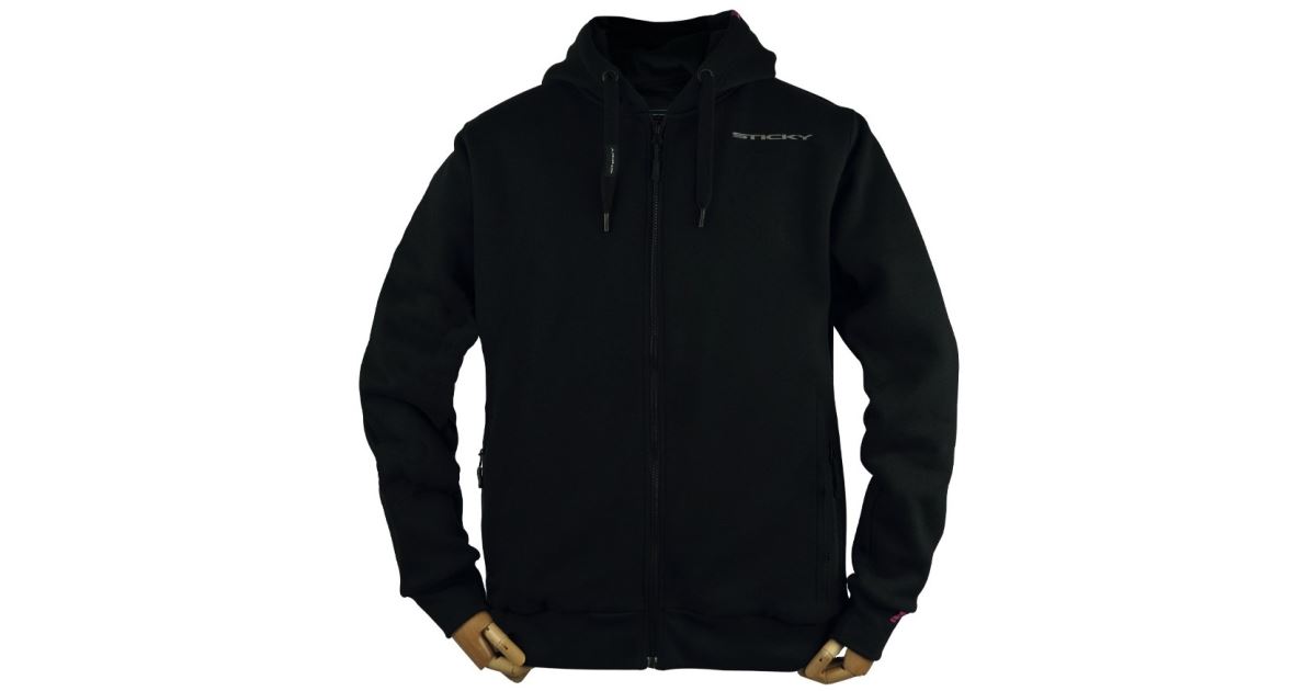 – Mikina je v elegantní černé barvě s logem Sticky Baits na hrudi.