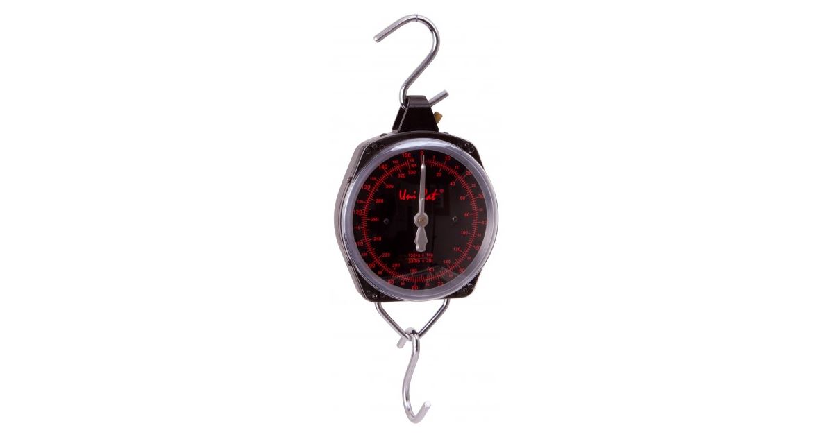 Elegantní černo-červená optika má stupnice v librách nebo v kilech. Váží až do 150kg. Nahoře má nerezový hák k zavěšní váhy, dole potom hák na zavěšení vážícího saku. Váha je v ochranném pouzdru. Černo-červená optika -přesné vážení.