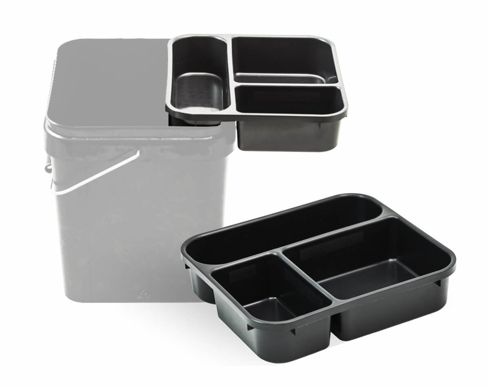 Praktická tříkomorová vložka určená pro přehledné uložení příslušenství, návnad a krmení. Díky lisované rukojeti se snadno vyjímá a její velikost je vhodná pro většinu 17L kbelíků.